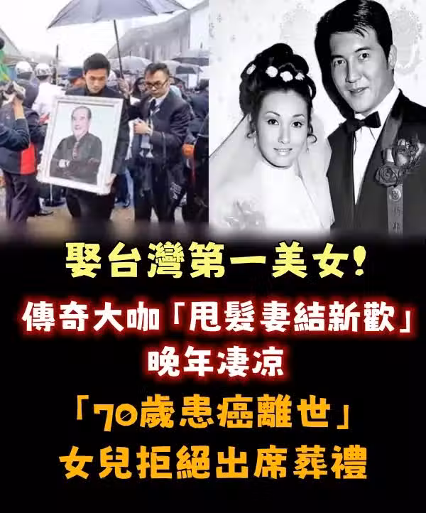娶台灣第一美女! 傳奇大咖「甩髮妻結新歡」晚年淒涼「70歲患癌離世」女兒拒絕出席葬禮