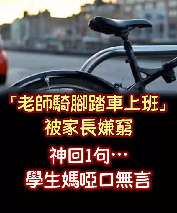 「老師騎腳踏車上班」被家長嫌窮 神回1句…學生媽啞口無言