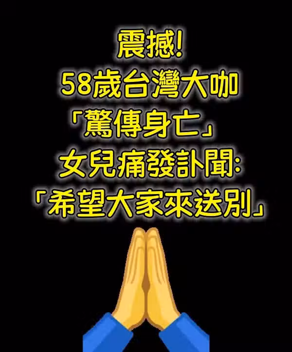 震撼!58歲台灣大咖「驚傳身亡」 女兒痛發訃聞:「希望大家來送別」