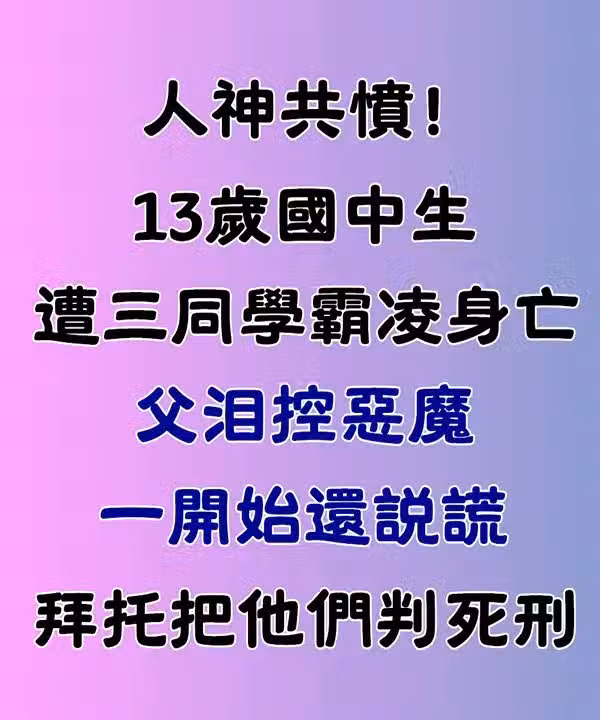 人神共憤!13歲國中生「遭3同學霸.凌身.亡」丟棄菜園 父淚控惡魔「一開始還說謊...」:拜託死.刑
