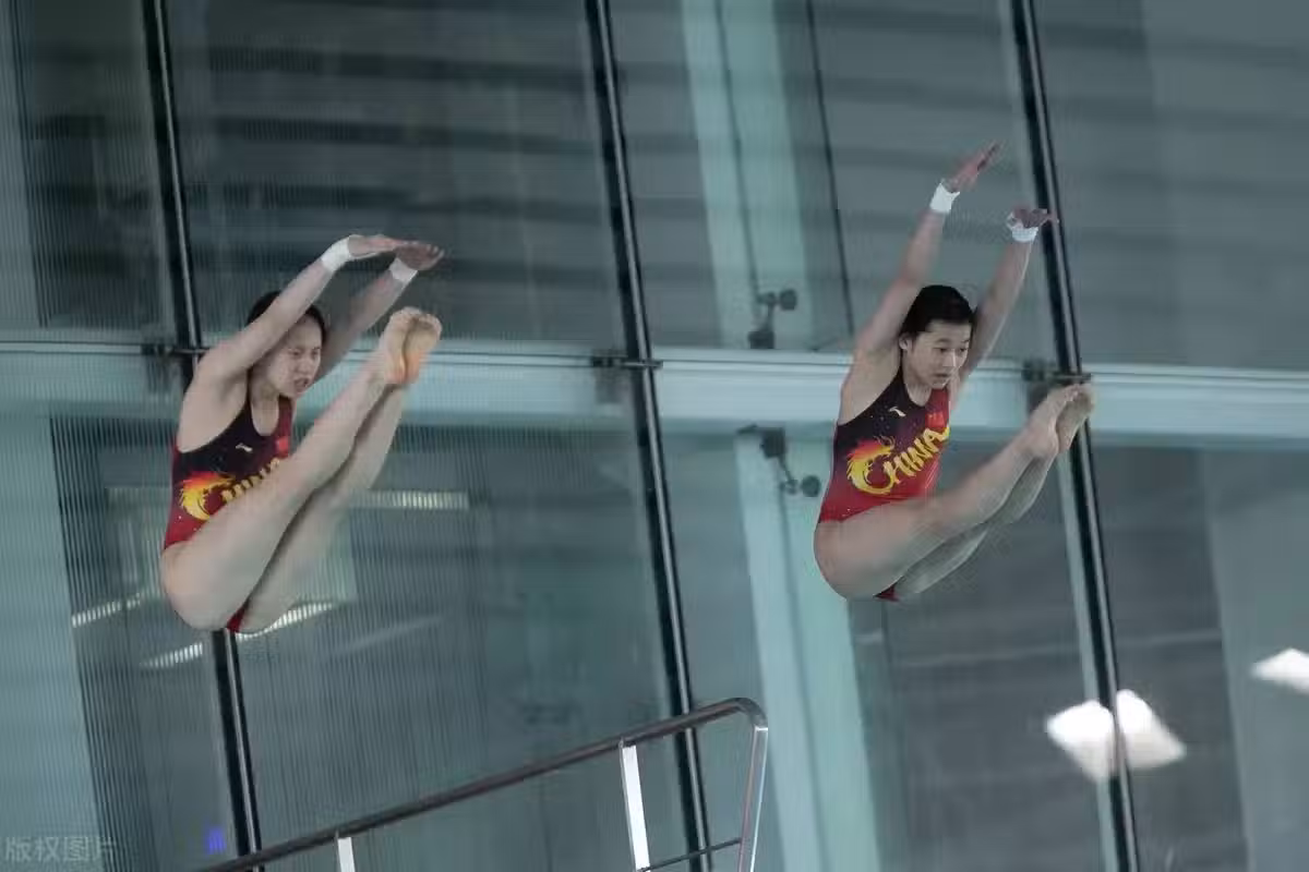 這一跳陳芋汐有效分9.5分,全紅嬋9分,同步性三個都是9分,單跳又一個54.6分,兩跳過後109.2分,領先第二名11分。