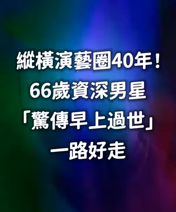 縱橫演藝圈40年!66歲資深男星「驚傳早上過世」一路好走