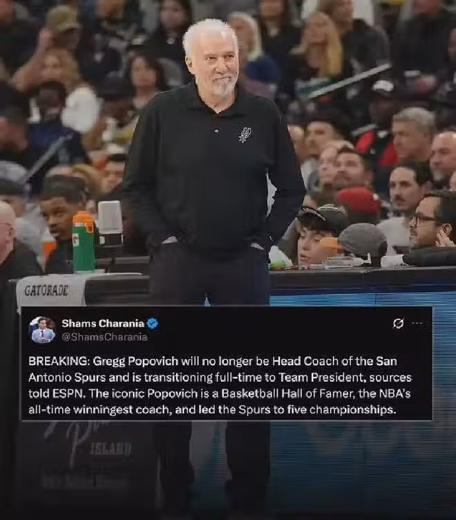 Shams:由於身體原因,波波維奇不再擔任馬刺主教練,轉型全職球隊總裁。