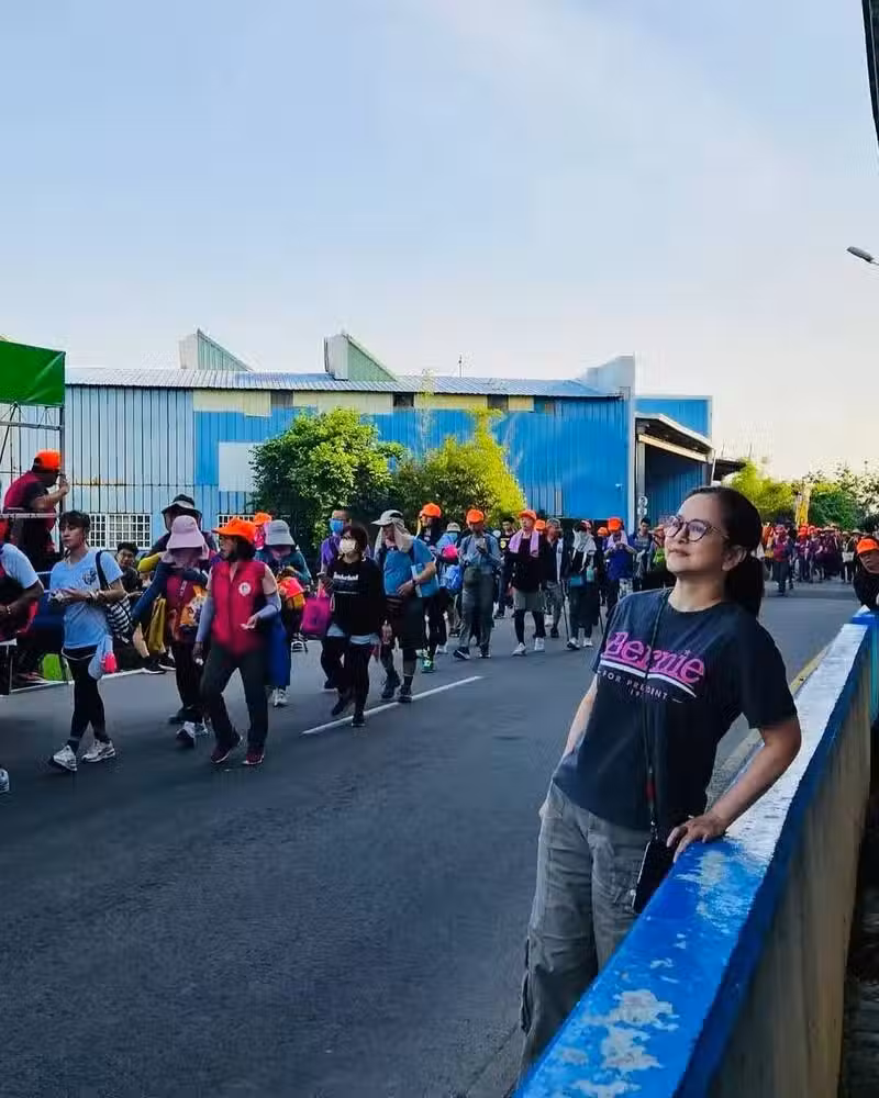 已經52歲的她,戴著眼鏡、綁著馬尾,選擇以最簡單裝扮參與盛事,完全融入在萬頭攢動的信眾中。