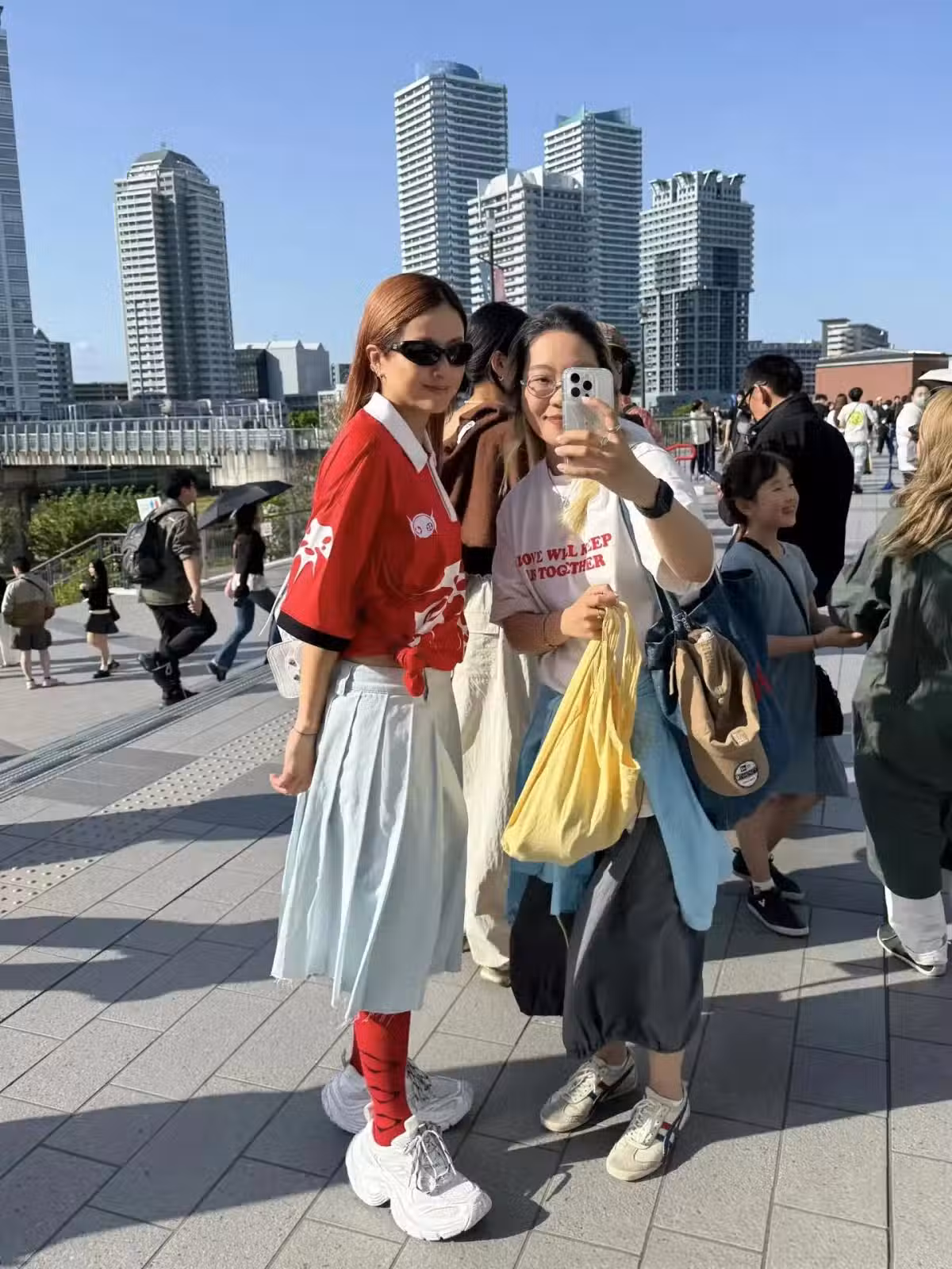 51歲徐濠縈現身日本,和未來女婿同框,穿衣另類,短裙和襪子好醜