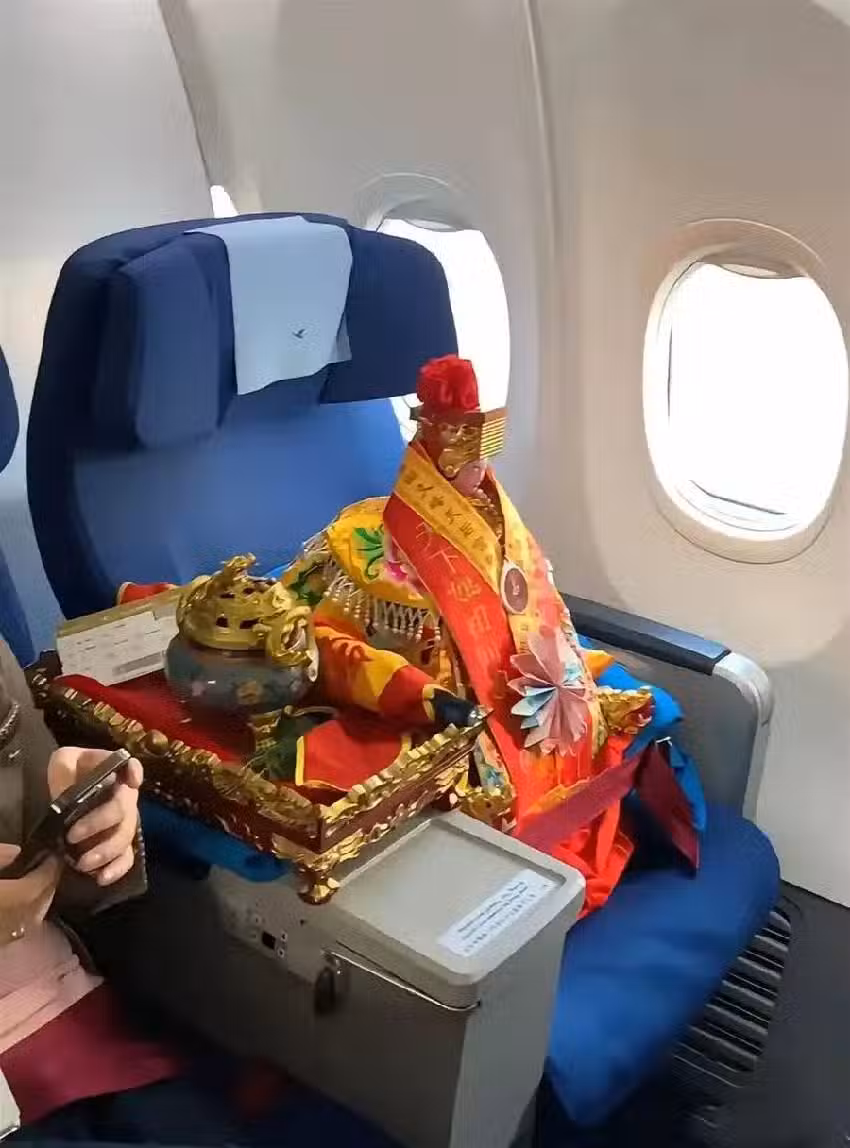 這尊媽祖是從福建請的,傳說中媽祖是掌管海上航運的女神,而自己正好是做海上工作的,網友調侃專業對口」。