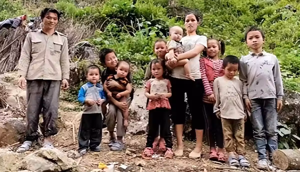 2020年曾有攝影師拍下這一幕,山村中的這對夫妻身邊圍著9個孩子,肚子裡還有一個。