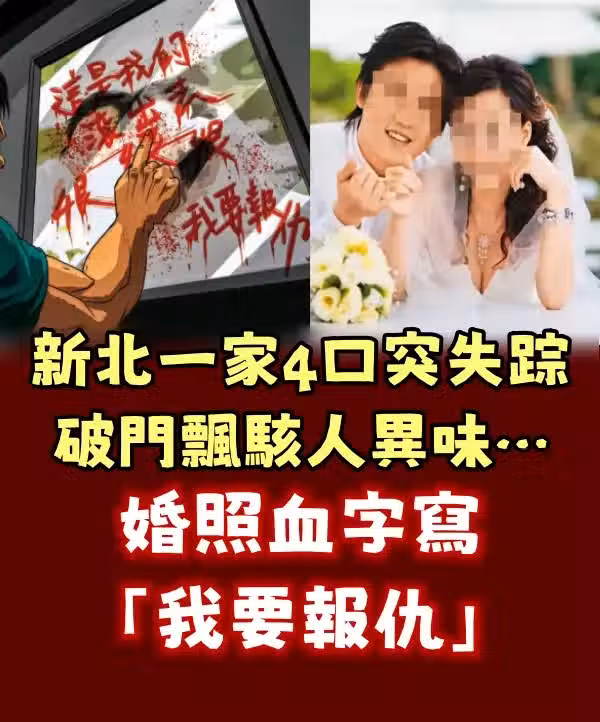 新北一家4口突失蹤 破門飄駭人異味…婚照血字寫「我要報仇」