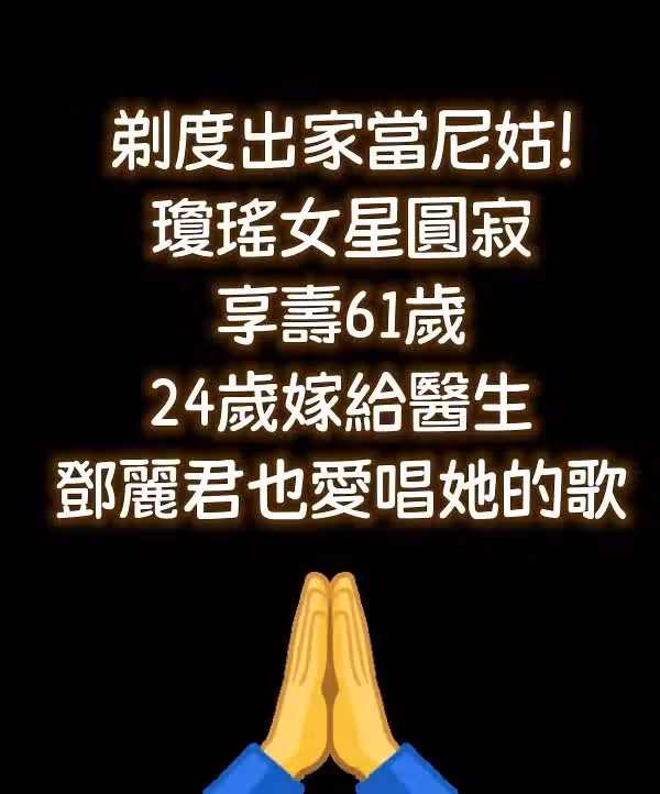 剃度出家當尼姑!瓊瑤女星圓寂享壽61歲... 24歲嫁給醫生「鄧麗君也愛唱她的歌」