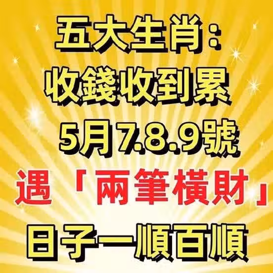 收錢收到累!5月7.8.9號遇「兩筆橫財」日子一順百順的生肖!