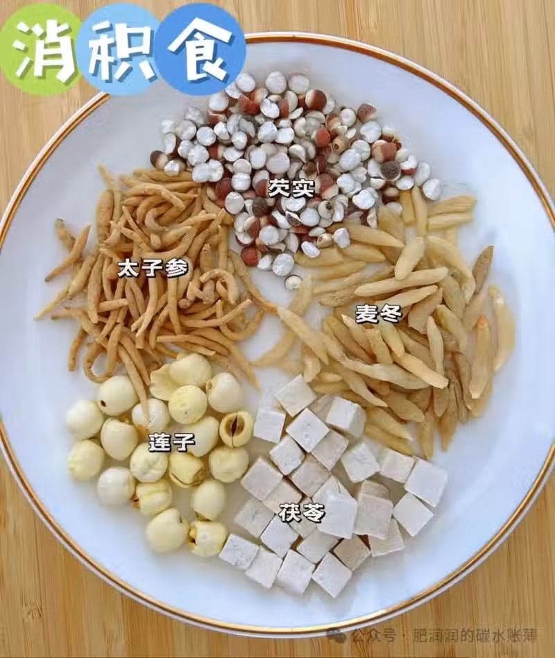 蓮子6g+太子參5g+麥冬5g+芡實8g+茯苓8g,煮30分鐘