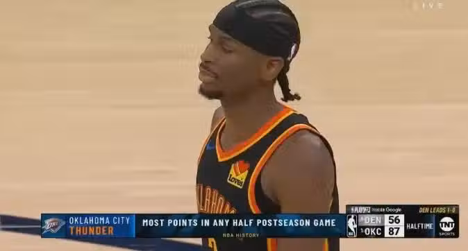 第三節比賽,掘金隊依舊沒有太多鬥志,特別是約基奇6犯被罰下的時候,比賽更加沒有懸念了,單節比賽,雷霆隊再一次領先了17分,三節比賽結束,雷霆隊的領先來到了48分,如果比賽就按照這個分差結束,掘金隊將創造出新的季後賽最大分差輸球紀錄。