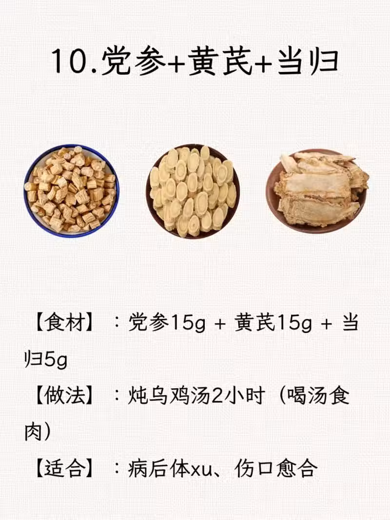 10. 黨參+黃芪+當歸:氣血雙補,適合術後體虛