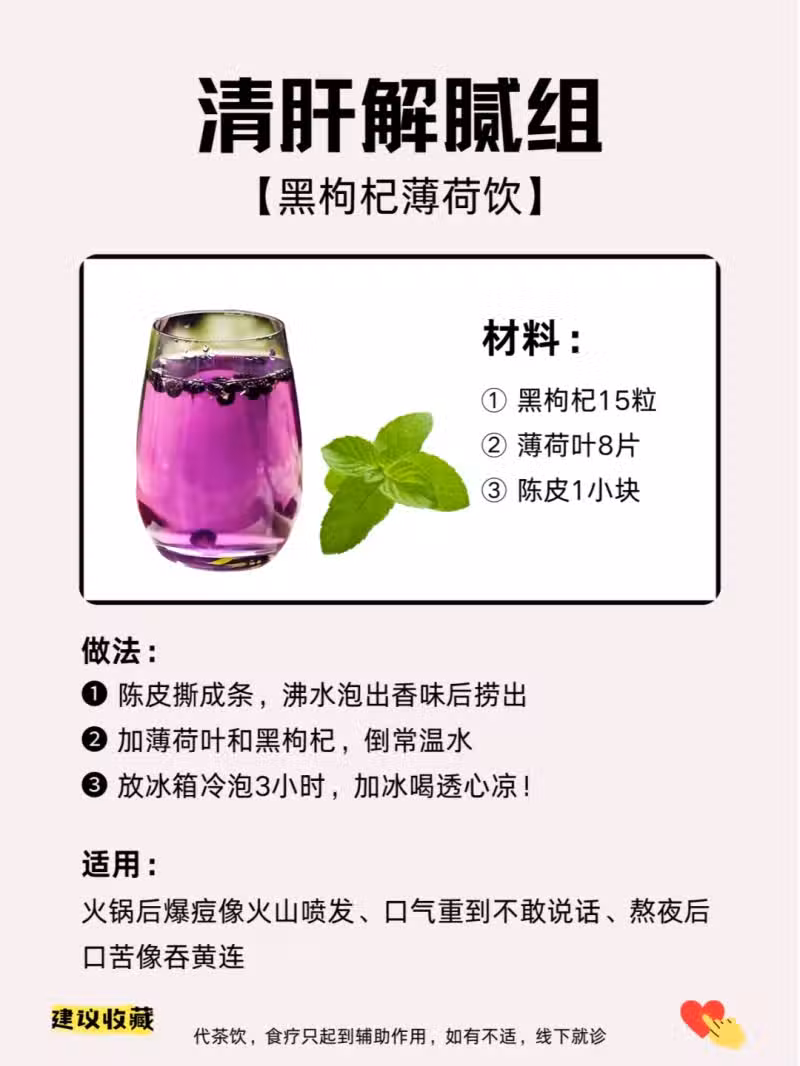 6️⃣ 黑枸杞薄荷飲——清肝解膩必備