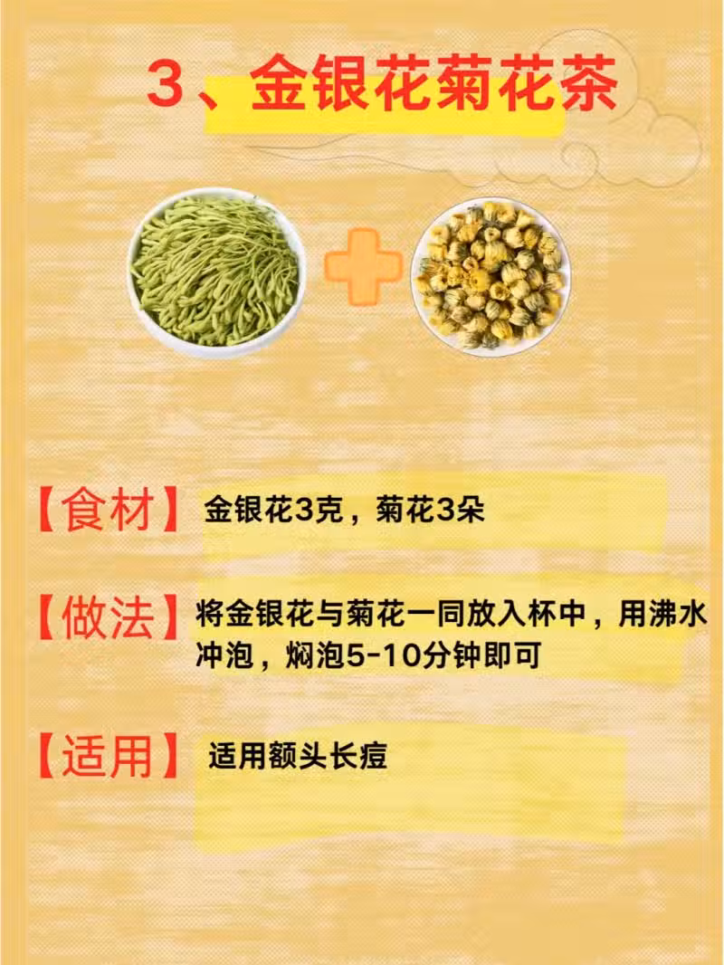 菊花清肝明目、降火潤燥,和金銀花強強聯合,堪稱「去火CP」!特別適合熬夜後肝火旺盛、滿臉油光爆痘的情況,喝完整個人都清爽了~