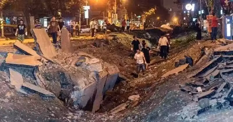 但在11點35分時斷送後15分鐘,竟引發爆炸,導致凱旋三路、二聖路坍塌。