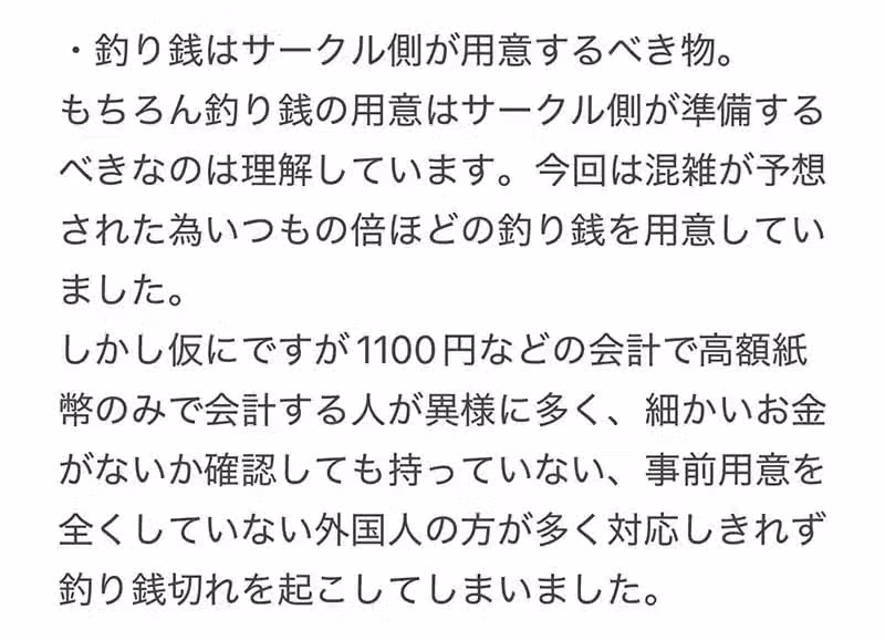 之後「ひでり」還補充說,她懷疑這些不懂同人活動本質的人,大多都跟近年來橫行於同人展的轉賣商有關。像她這次被安排在具有人氣的靠牆位置,販售的物品也是以周邊商品為主,就引來了不少疑似要轉賣的人……