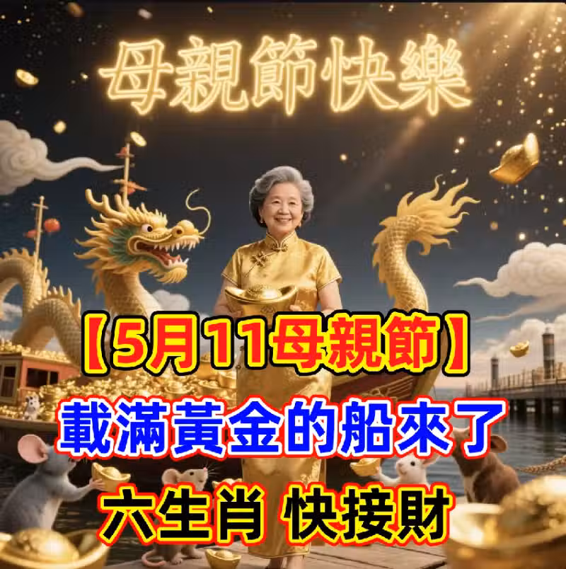 📅 5月11日母親節 到來,一艘 🚢載滿黃金 的財富之船正朝你駛來!這一天不僅充滿感恩的溫暖,更是 橫財入袋、好運爆棚 的轉機日!六大生肖財運如虹,快來看看有你嗎?💰✨