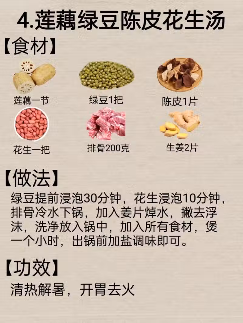 4.蓮藕綠豆陳皮花生湯 清熱解暑,開胃去火。
