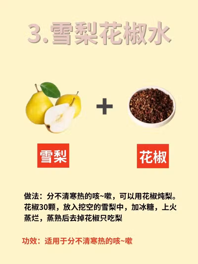 3.雪梨花椒水:適用分不清寒熱的咳~嗽