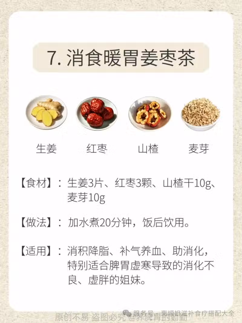 消食暖胃姜棗茶(脾胃虛寒、助消化)