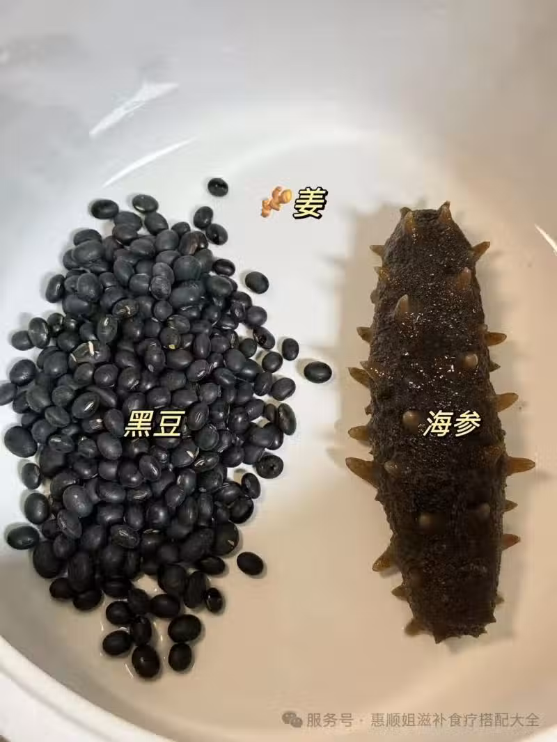 tips:黑豆可以放冰箱提前泡發一晚,提前泡發好的海參,整條下去燉(20分鐘)燉好了再剪開跟黑豆一起吃,燉出來的水也是好東西噢,一起喝了(這裡不建議黑豆跟海參一起下去燉2小時哈,海參燉這麼久會化水,溶掉的)