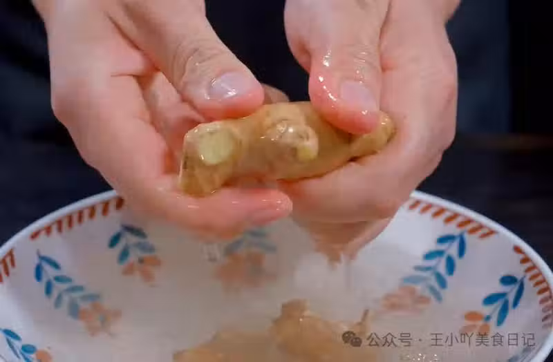 反覆搓洗:浸泡好後,用手反覆搓洗生薑,因為生薑不去皮,所以要把表皮上的泥巴和髒東西都清洗乾淨。可以多換幾次清水,確保生薑洗凈。
