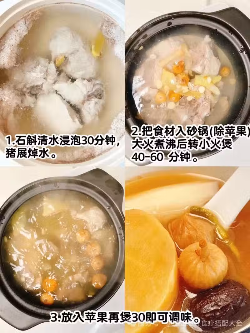 ◽把食材入砂鍋(除蘋果)大火煮沸後 轉小火煲40-60 分鐘