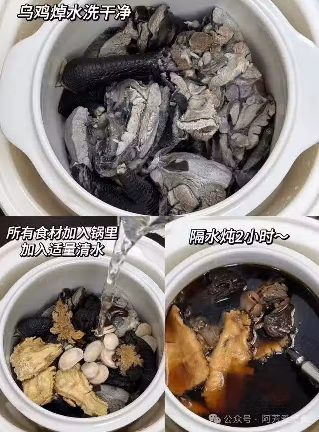 掀開蓋子的瞬間,食材的草本氣息混著雞肉香撲面而來。湯色雖深卻清澈,烏雞燉得酥軟脫骨,用筷子輕輕一撥就散開。