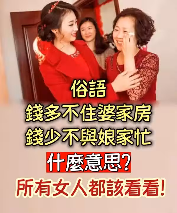 俗語「錢多不住婆家房,錢少不與娘家忙」什麼意思?所有女人都該看看!