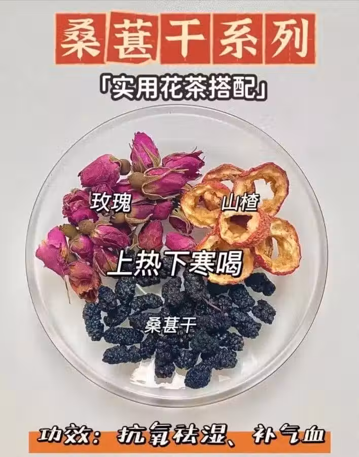 6、桑葚干+玫瑰+山楂(上熱下寒喝)