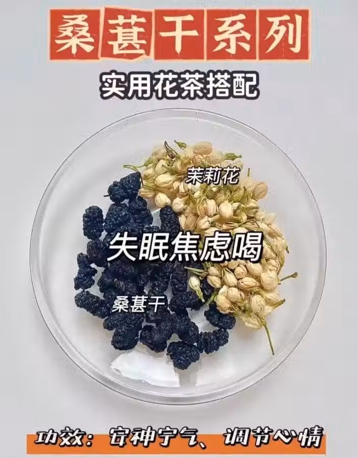 3、桑葚性寒,不宜過量食用,除了以上的搭配,可以搭配一些性溫的花茶食材