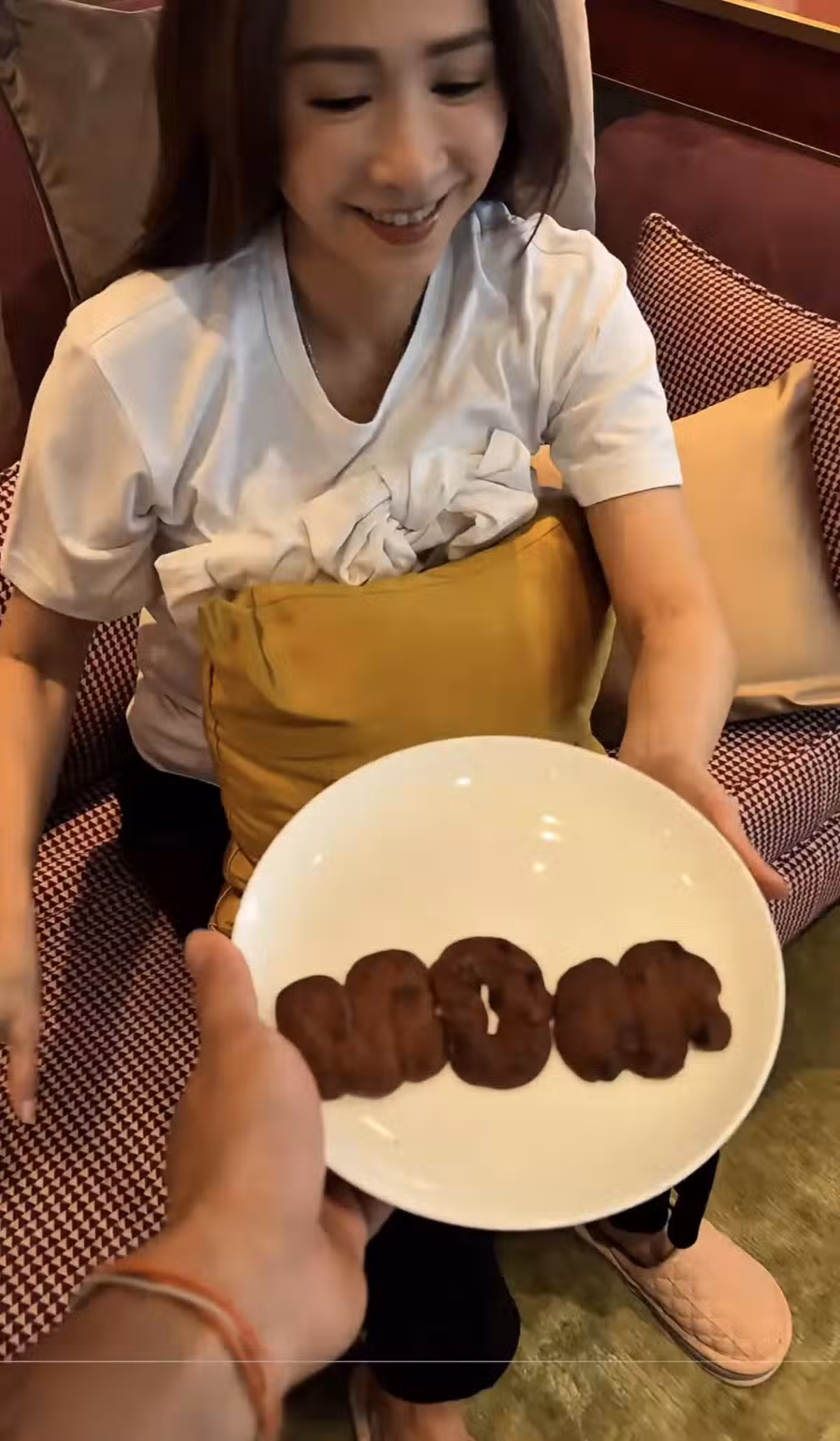 57歲吳婉芳在家過母親節,吃了次子做的餅乾,一臉幸福狀態好年輕