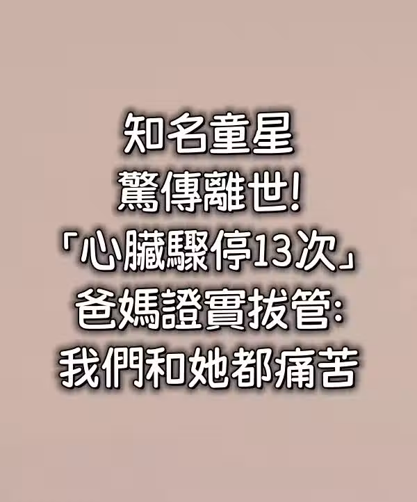 快訊/知名童星驚傳離世!「心臟驟停13次」爸媽證實拔管:我們和她都痛苦