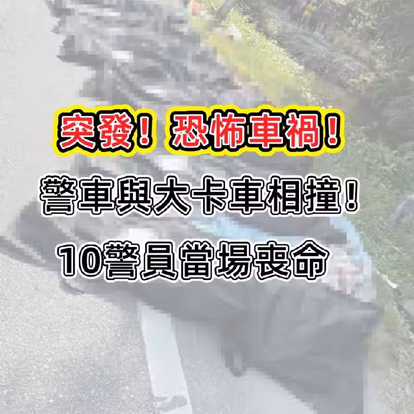 突發!恐怖車禍!警車與大卡車相撞! 10警員當場喪命