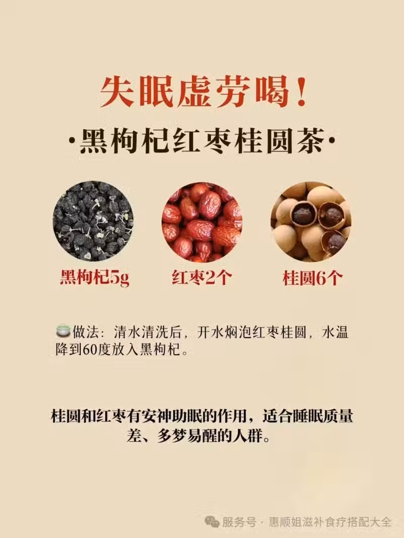 食材:黑枸杞5克、紅棗2顆、桂圓6個