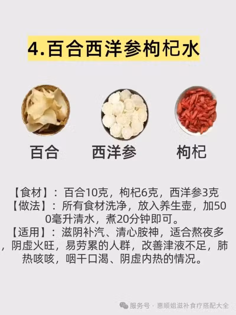 ✅️百合西洋參枸杞水:提神補氣,改善睡眠質量。