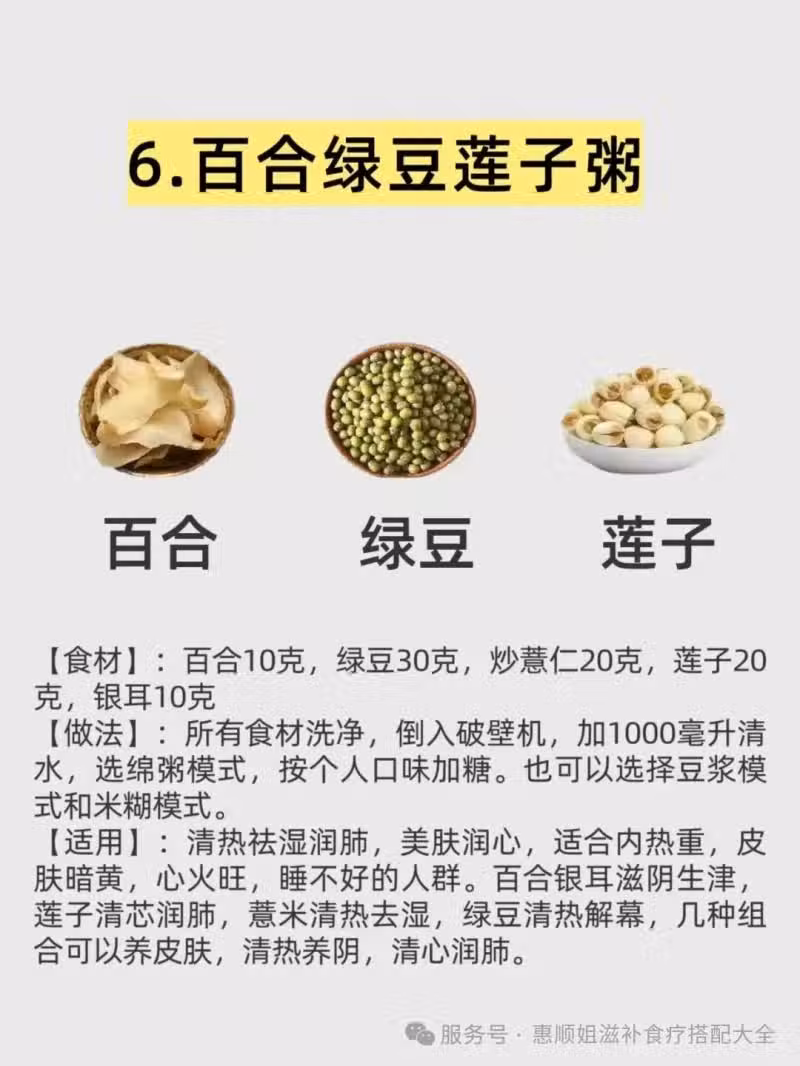 ✅️百合綠豆粥:清熱解毒,改善睡眠。