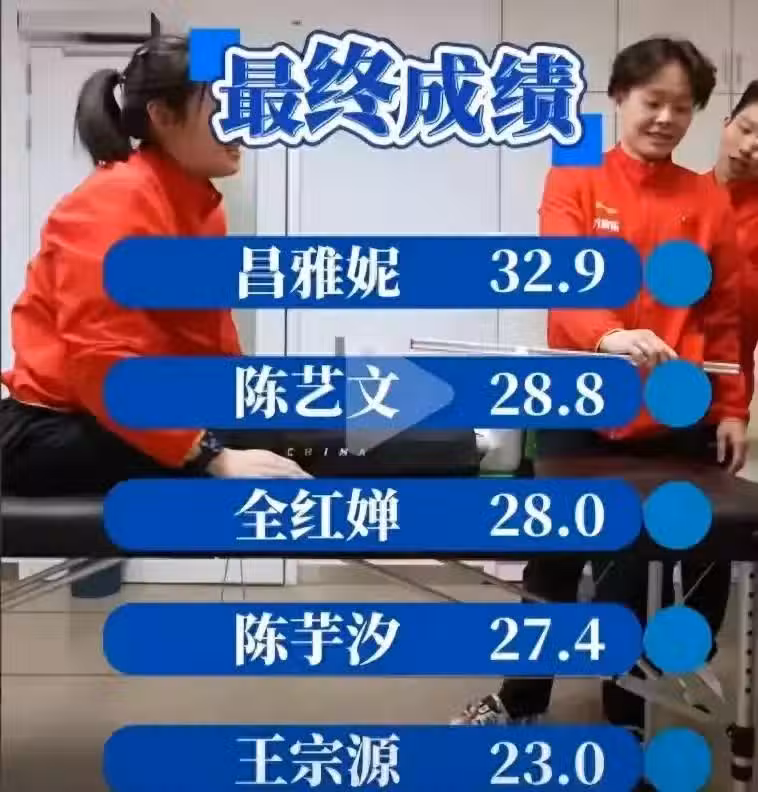 估計大家在第一時間,覺得肯定是全紅嬋或者陳芋汐奪得了最后冠軍,畢竟她們跳水那麼厲害,柔韌度不會太差的。可惜最後的結果讓大家失望了,兩位運動員都沒有得到第一名。那麼第一名是誰呢?那就是跳水隊大美女昌雅妮,她以32.9拿到了冠軍,真的太優秀了。不過全紅嬋和陳芋汐也不要難受,畢竟這只是遊戲,沒有多少實際參考價值,大家娛樂一下就好了。