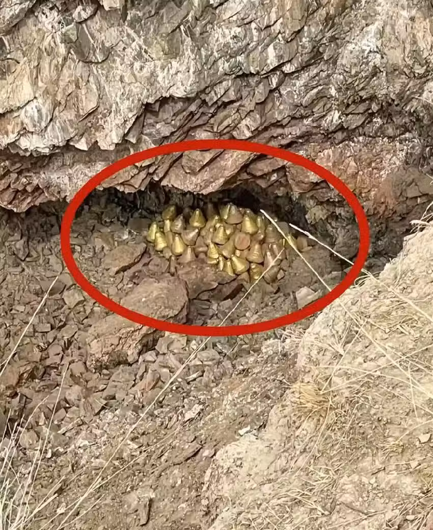 有戶外愛好者分享經歷,稱在徒步時發現大量金燦燦的錐形物體,