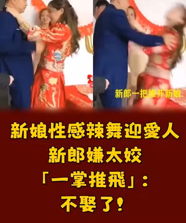 內地近日流傳一組圖片,一名新娘在迎親的時候,熱情對著新郎跳艷舞,沒想到新郎看了以後完全笑不出來,還一把將新娘給推飛,怒罵:「不娶了!」
