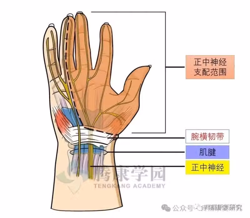 腕管是腕部的一個緊密的骨-纖維管道,其間有4個指深屈肌腱、4個指淺屈肌腱、拇長屈肌腱和正中神經通過。