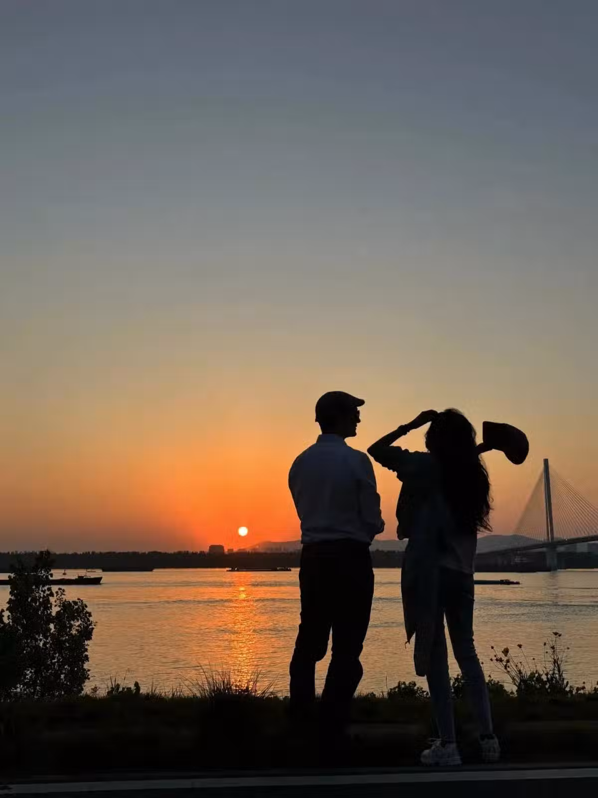 莫文蔚和老公現身南京江心洲,牽手散步看日落,像偶像劇一樣浪漫