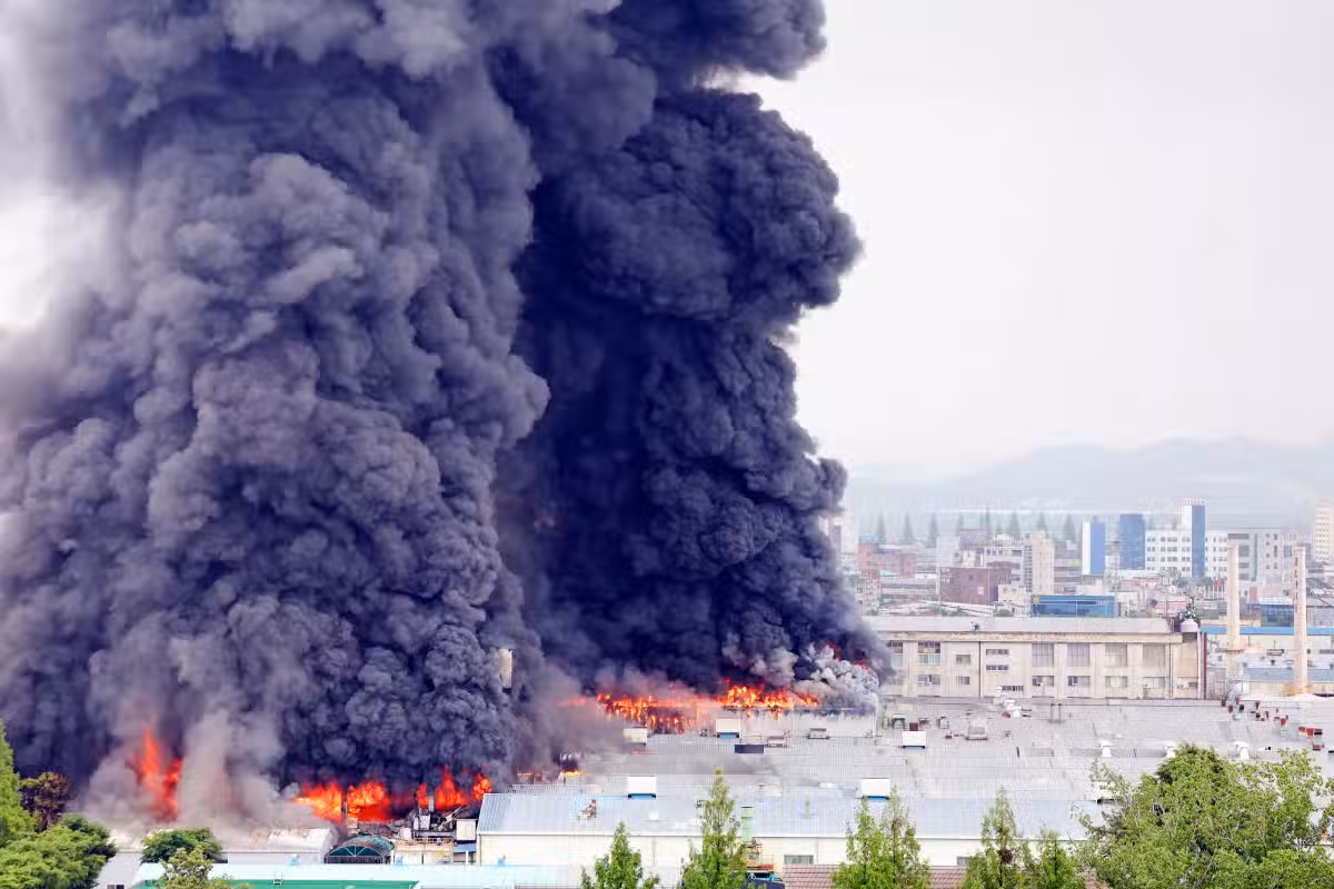 韓國光州當地一座重要的輪胎生產工廠今(17)日發生嚴重火災!疑似是橡膠熱壓設備產生火花,加上橡膠的易燃性,才會導致火勢迅速擴散,現場400多名員工緊急疏散,其中一名員工因腿部骨折而受困,受困40分鐘後才獲救。目前有毒氣體飄散至周邊地區,當局預估撲滅火勢需要數天。