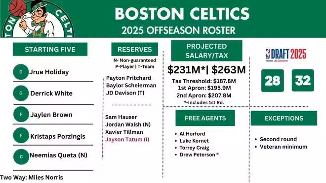 最後他們還得去考慮,如何續約塔圖姆和霍福德,塔圖姆能簽5年3.18億,這個錢你得給,這是頂級超巨聯盟前五。霍福德一年950萬是超值,你怎麼能不續約呢?別忘了普里查德這4年3000萬的合同,絕對是優質且廉價的,光看這7個人的工資,凱爾特人都扛不住。