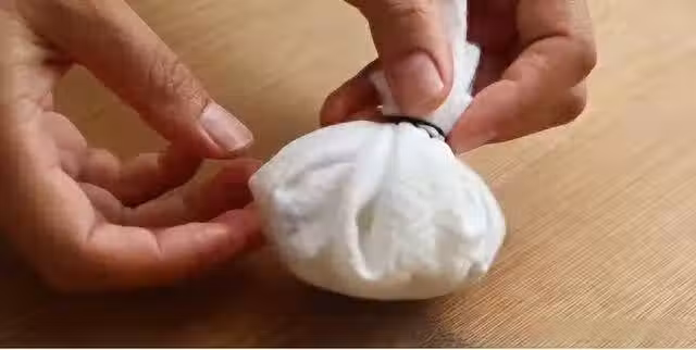 2、使用無紡布紙巾(或衛生紙或紗布,只要有較好的透氣性),將所有準備好的材料放在上面。