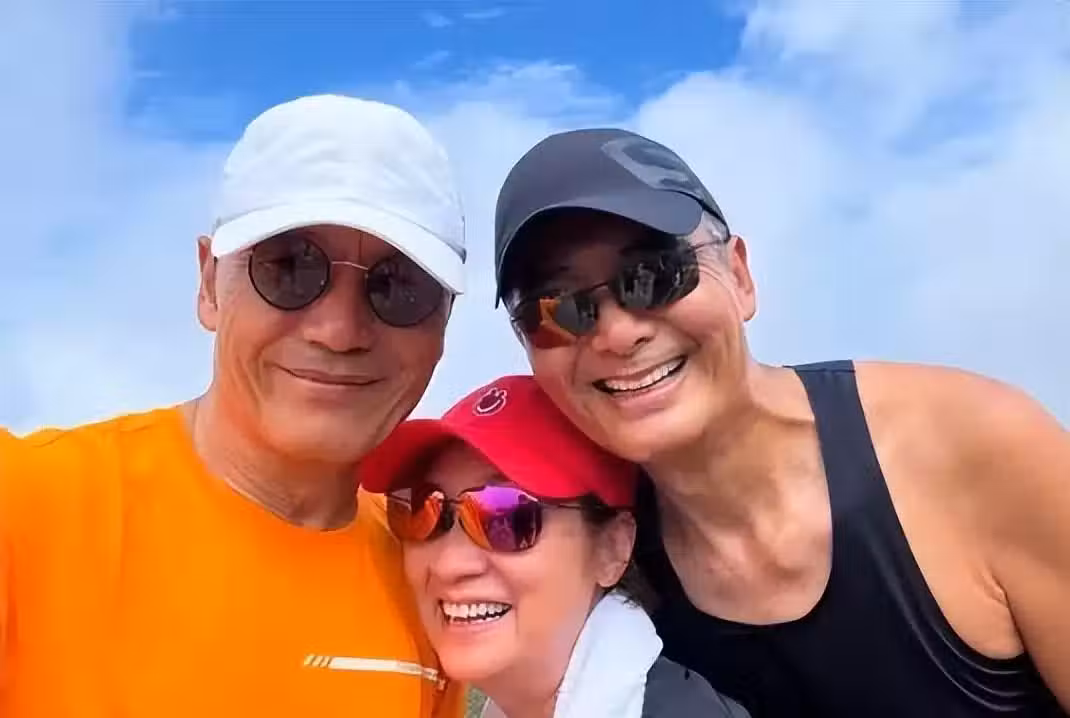 「三哥」 苗僑偉帶著妻子戚美珍陪著周潤發晨跑,苗僑偉:「無論做人做事,都是我學習的榜樣,最尊敬的大師兄,70歲生日快樂,瀟洒人生,快樂自在。」
