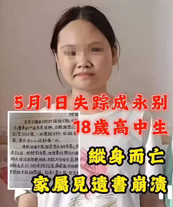 5月1日起失蹤!18歲高中生「墜亡」家屬崩潰,留兩封信揭真相「我害了一.條.人.命」