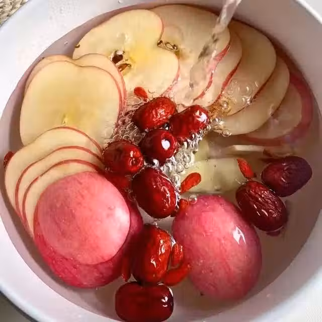 乾飯人給我鎖死蘋果山楂水!上周部門聚餐吃火鍋,我當場炫了兩壺,油膩感瞬間消失!蘋果不用削皮,抓把山楂干煮15分鐘,放涼加冰塊,我閨蜜喝完摸著圓滾滾的肚子說:「再來份腦花!」