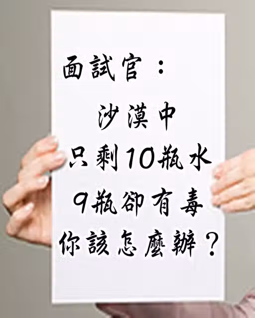 面試官:「沙漠中只剩10瓶水,9瓶有毒!」你該怎麼辦? 她當下「機智神回答」立刻被錄取